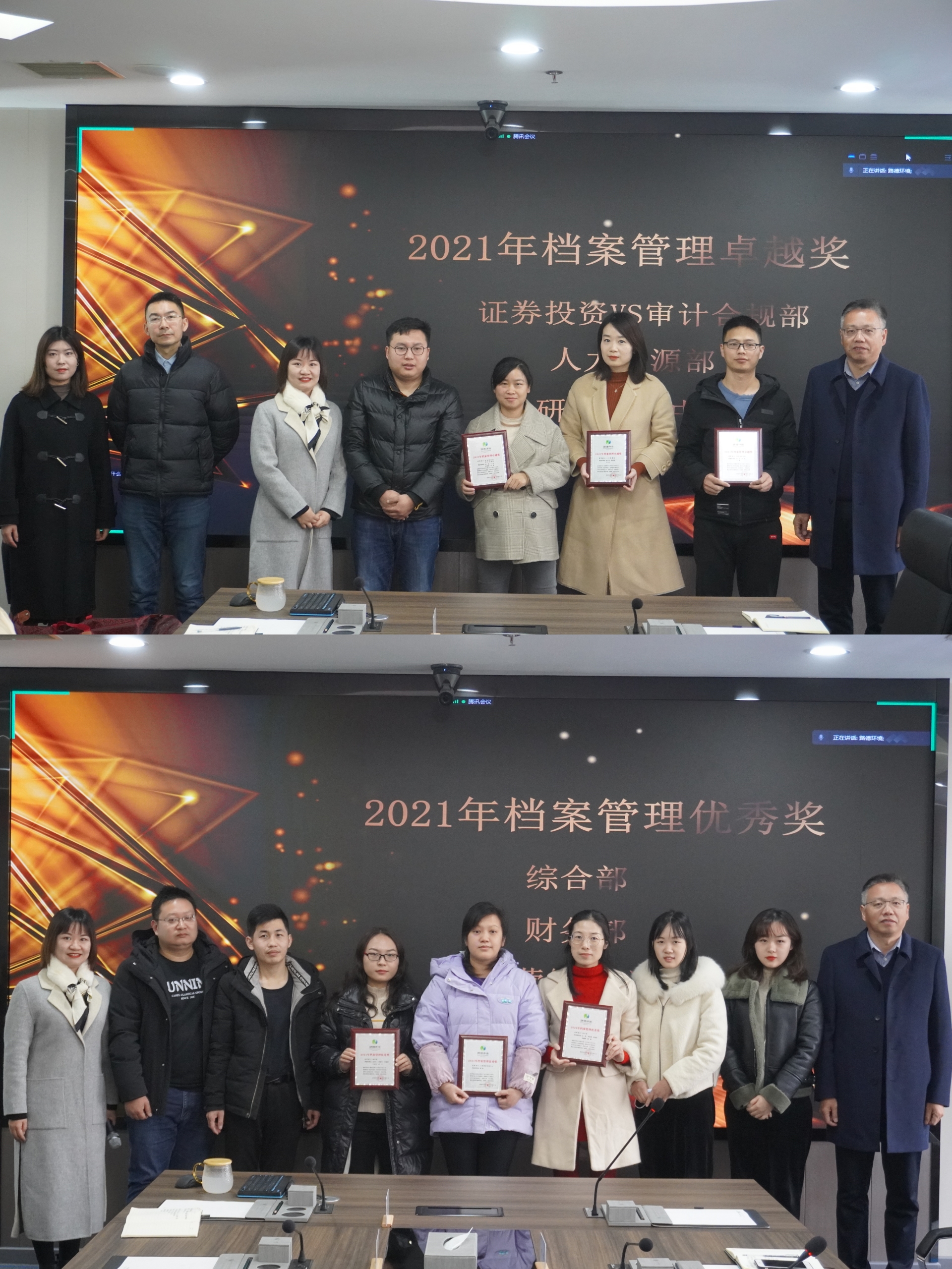 最后,季光明先生和劉菁女士對(duì)本次檔案檢查榮獲卓越獎(jiǎng)和優(yōu)秀獎(jiǎng)的部門(mén)頒發(fā)了榮譽(yù)獎(jiǎng)牌,此次檔案檢查工作圓滿落幕。
