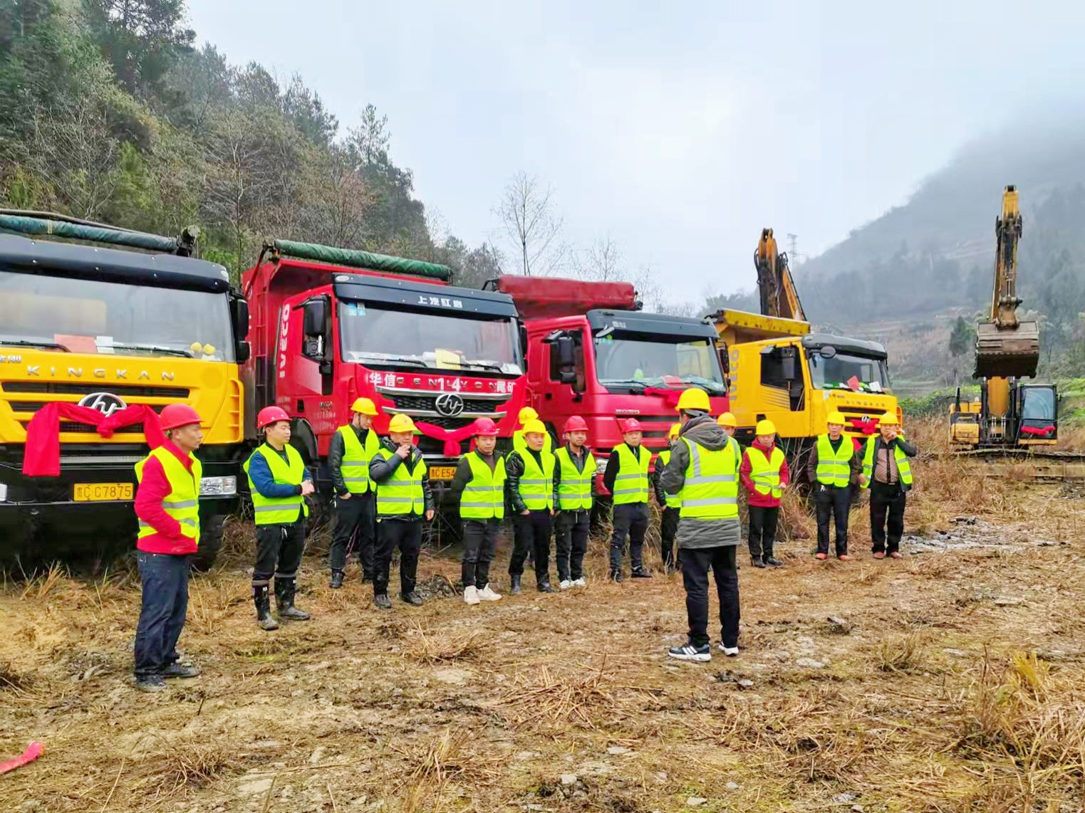 公司基建部負(fù)責(zé)人喻東林對現(xiàn)場施工團(tuán)隊寄予了厚望,強(qiáng)調(diào)今年公司發(fā)展的任務(wù)艱巨繁重,要求全體參建人員把“目標(biāo)”刻在心中,把“執(zhí)行”視為鐵律,把“擔(dān)當(dāng)”作為自覺,拿出沖勁、闖勁和拼勁,聚力把各項工作抓實。一排排披掛紅綢的工程車整裝待發(fā),一時間萬炮齊鳴,響聲震天,鞭炮聲、機(jī)器轟鳴聲、歡笑聲久久回蕩在山谷間,喜慶而振奮人心。