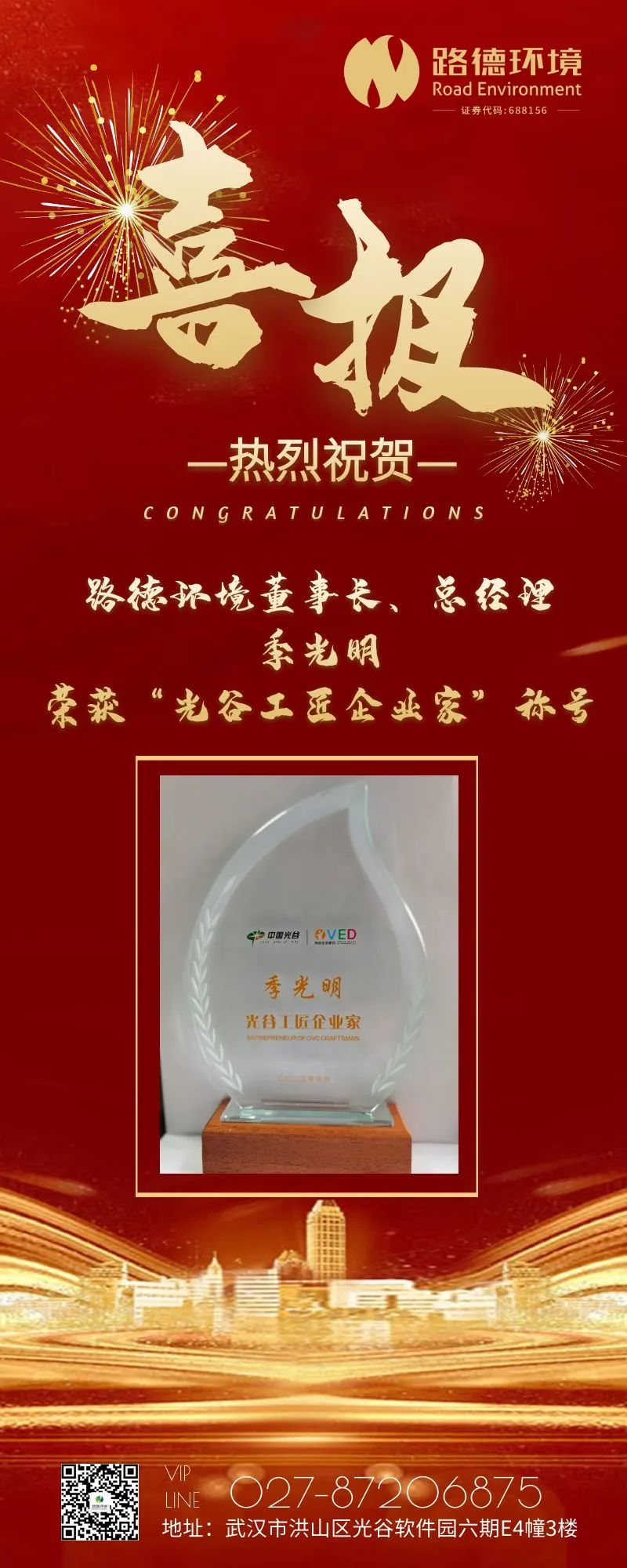 【路德·喜報(bào)】熱烈祝賀季光明董事長(zhǎng)榮獲“光谷工匠企業(yè)家”稱號(hào)