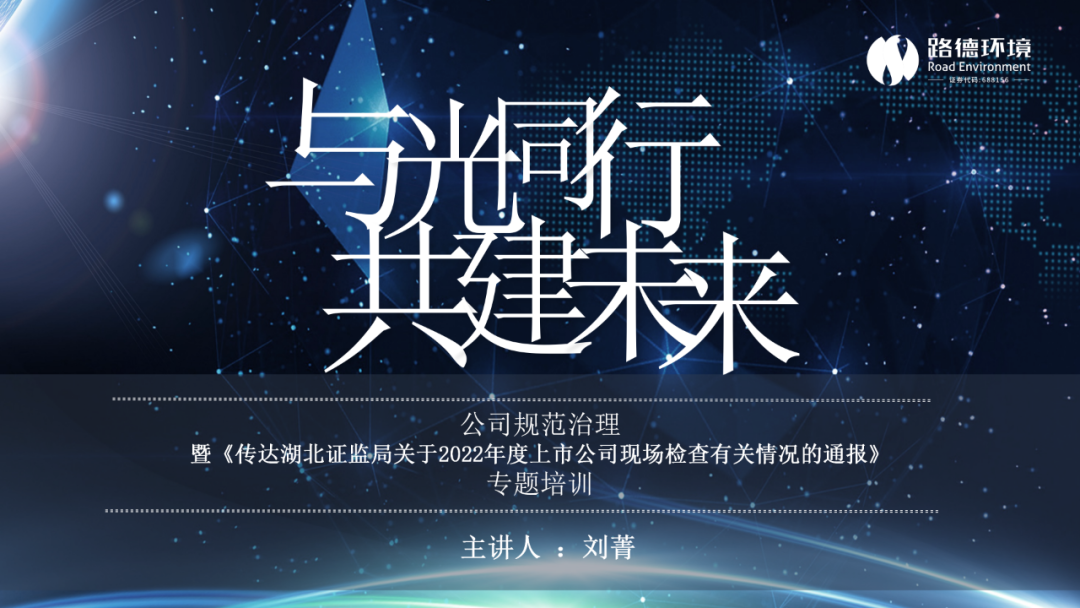 2月25日,為響應(yīng)湖北證監(jiān)局“進(jìn)一步提升轄區(qū)上市公司規(guī)范運作水平,推動高質(zhì)量發(fā)展”的號召,路德環(huán)境召開了“公司規(guī)范治理暨《傳達(dá)湖北證監(jiān)局關(guān)于2022年度上市公司現(xiàn)場檢查有關(guān)情況的通報》專題培訓(xùn)”活動。