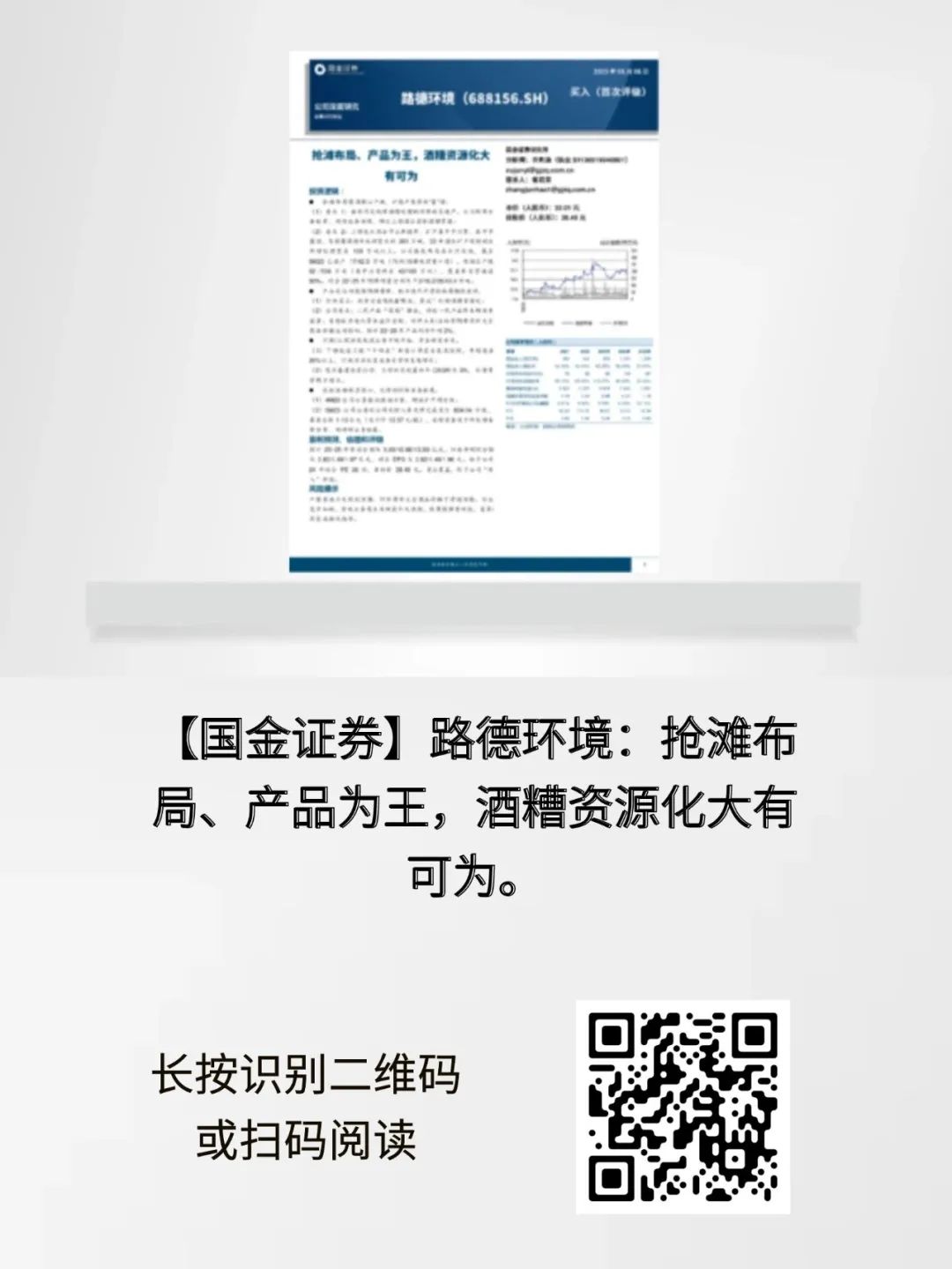 2023年6月6日,國金證券發(fā)布了以《路德環(huán)境:搶灘布局、產(chǎn)品為王,酒糟資源化大有可為》為主題的深度證券研究報(bào)告,首次覆蓋路德環(huán)境,并給予了“買入”評(píng)級(jí)。