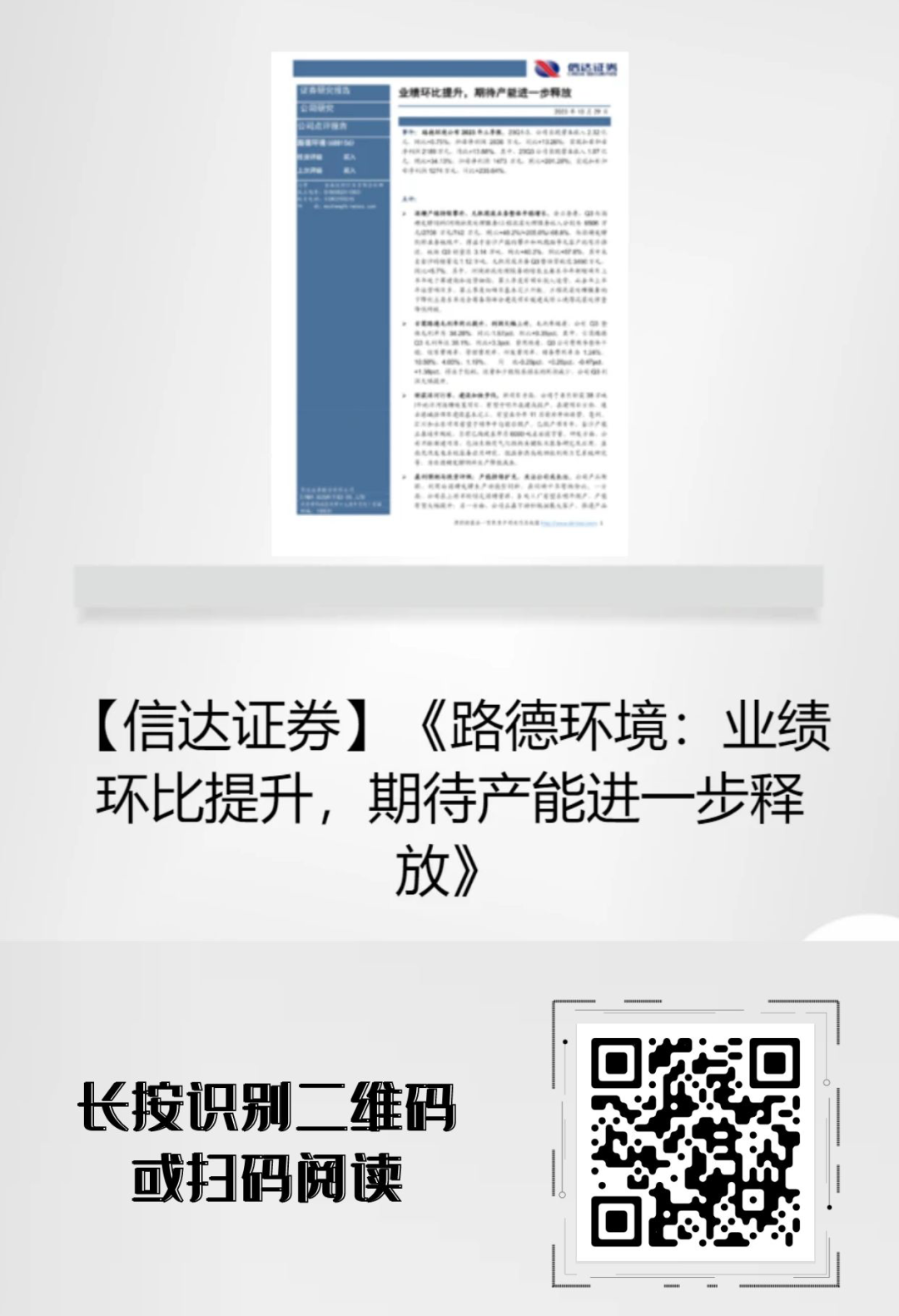 【點評報告】信達證券點評路德環(huán)境:業(yè)績環(huán)比提升,期待產(chǎn)能進一步釋放
