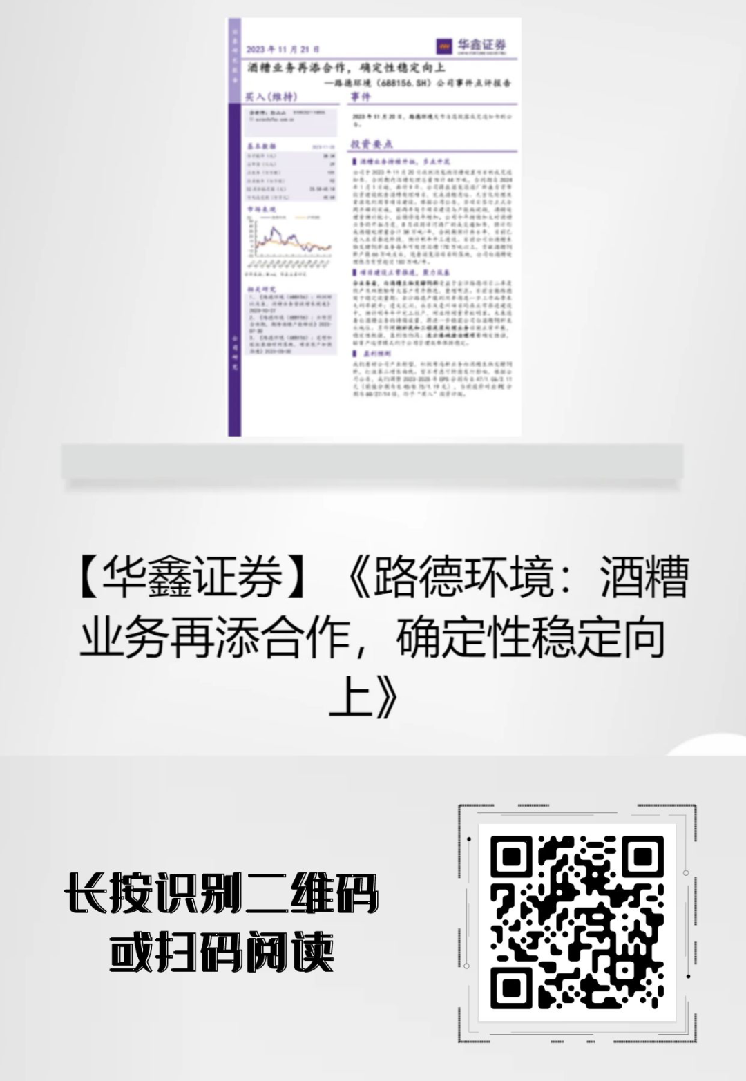 2023年11月20日,路德環(huán)境自愿披露收到酒鬼酒股份有限公司酒糟處置項目《成交通知書》的公告,華鑫證券發(fā)布點評報告,對該事件進(jìn)行點評分析,并對公司未來發(fā)展前景給予肯定。