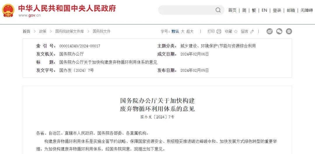 這也透露出一個信號——2024年,廢棄物循環(huán)利用產(chǎn)業(yè)將成為國家大力推動發(fā)展的一個環(huán)保細(xì)分領(lǐng)域。