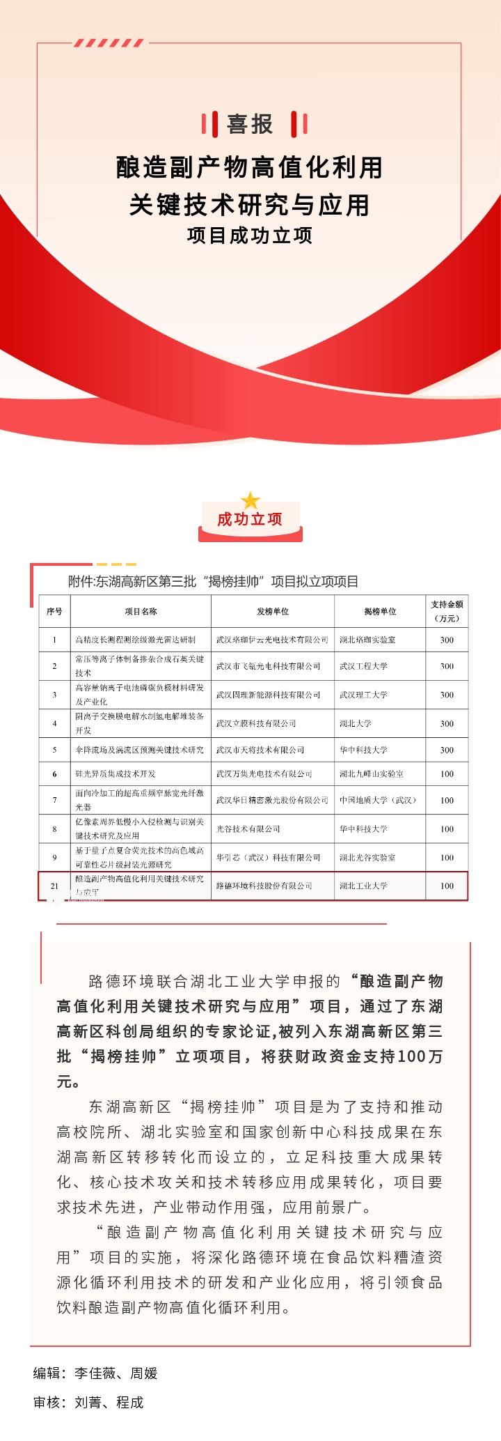 【路德·喜報】“釀造副產(chǎn)物高值化利用關(guān)鍵技術(shù)研究與應(yīng)用”項目成功立項