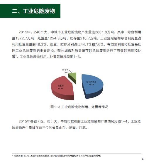 環(huán)境保護(hù)部今日發(fā)布《2016年全國大、中城市固體廢物污染環(huán)境防治年報年報》(以下簡稱《年報》),從全國大中城市固體廢物信息發(fā)布情況、全國固體廢物污染防治工作進(jìn)展情況、全國固體廢物污染防治能力建設(shè)情況以及地方固體廢物污染防治工作實踐4個方面,系統(tǒng)介紹了2015年我國固體廢物污染防治工作的相關(guān)情況。