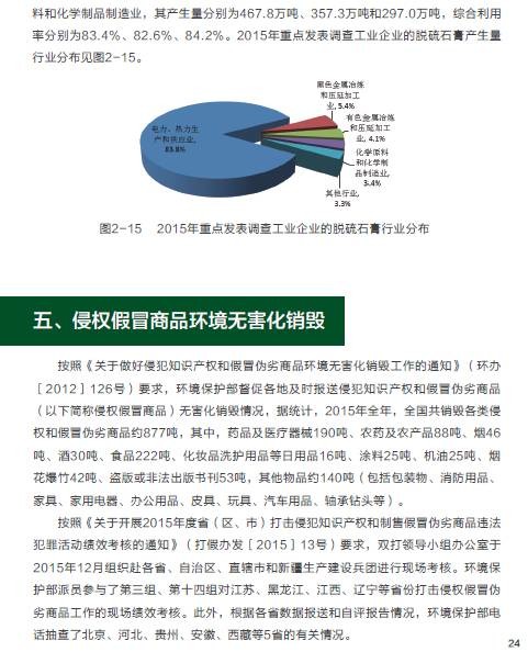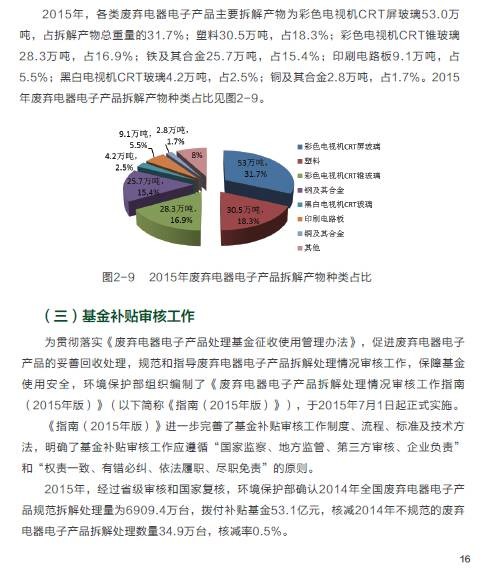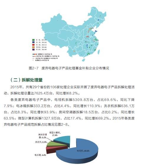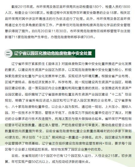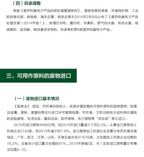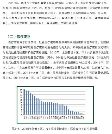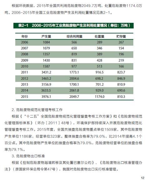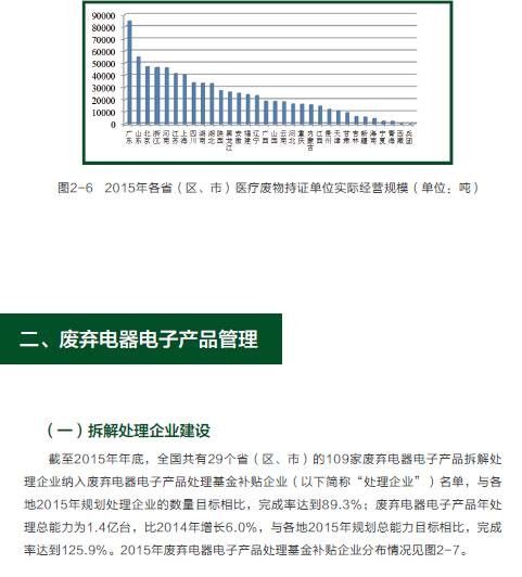 2015年,在危險廢物污染防治工作方面,全國各?。▍^(qū)、市)頒發(fā)的危險廢物經(jīng)營許可證共2034份,經(jīng)營單位核準(zhǔn)利用處置規(guī)模已達(dá)到5263萬噸/年,實際經(jīng)營規(guī)模為1536萬噸;持續(xù)深入開展危險廢物規(guī)范化管理督查考核工作,各環(huán)境保護(hù)督查中心共抽查1509家企業(yè),整體抽查合格率為79.0%,比2014年提高4.1個百分點。在電子廢物污染防治方面,全國共有29個?。▍^(qū)、市)的109家廢棄電器電子產(chǎn)品拆解處理企業(yè)納入廢棄電器電子產(chǎn)品處理基金補貼企業(yè)名單,廢棄電器電子產(chǎn)品年處理總能力為1.4億臺,實際拆解處理總量達(dá)7625.4萬臺,同比增長8.2%。在可用作原料的廢物進(jìn)口方面,2015年進(jìn)口廢物4698萬噸,同比減少約5.3%;從事進(jìn)口廢物加工利用企業(yè)2142 家,同比減少約7.6%。