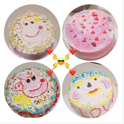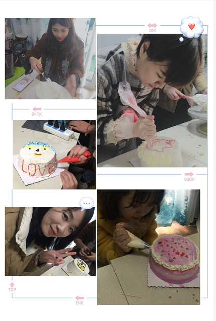 開始做蛋糕啦!這個(gè)裱花盤怎么這么不聽(tīng)話,這個(gè)刮刀咋抹不平蛋糕面啊?為了抹出一個(gè)平整的蛋糕,十八種練功姿勢(shì)都上了。