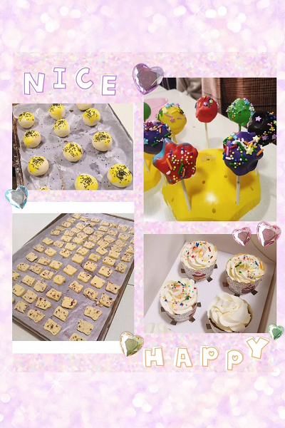 五彩的奶油蛋糕、精致的杯子蛋糕、可口的巧克力棒棒糖、香噴噴的蛋黃酥和蔓越莓曲奇都一一制作成功,空氣中彌漫著香甜的氣息,大家及學(xué)習(xí)了烘焙知識(shí),也品嘗了香甜可口的甜點(diǎn)。