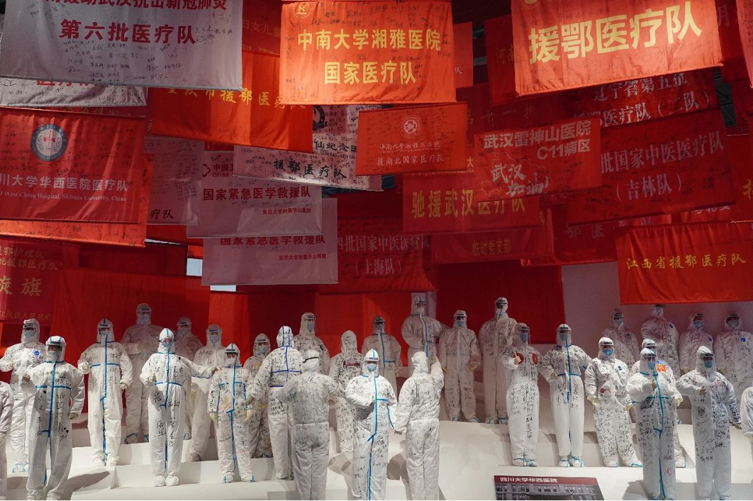 武漢市抗疫展覽館內(nèi),6個主題展區(qū)、1100余張照片、45個視頻、1000余件實物展品……,正是用一件件物品、一張張照片,帶領(lǐng)人們回到了年初波瀾起伏的數(shù)月。一幅幅寫實抗疫照片以及專門復(fù)原的雷神山醫(yī)院、方艙醫(yī)院等實物場景,集中展示了英雄的武漢人民在黨中央的堅強領(lǐng)導(dǎo)下進行抗疫斗爭的鮮活場景和感人事跡,瞬間把大家的思緒拉回到了那場驚心動魄、沒有硝煙的戰(zhàn)役中。集中展示了以習(xí)近平同志為核心的黨中央團結(jié)帶領(lǐng)全國人民打贏疫情防控的人民戰(zhàn)爭、總體戰(zhàn)、阻擊戰(zhàn)的偉大歷程。