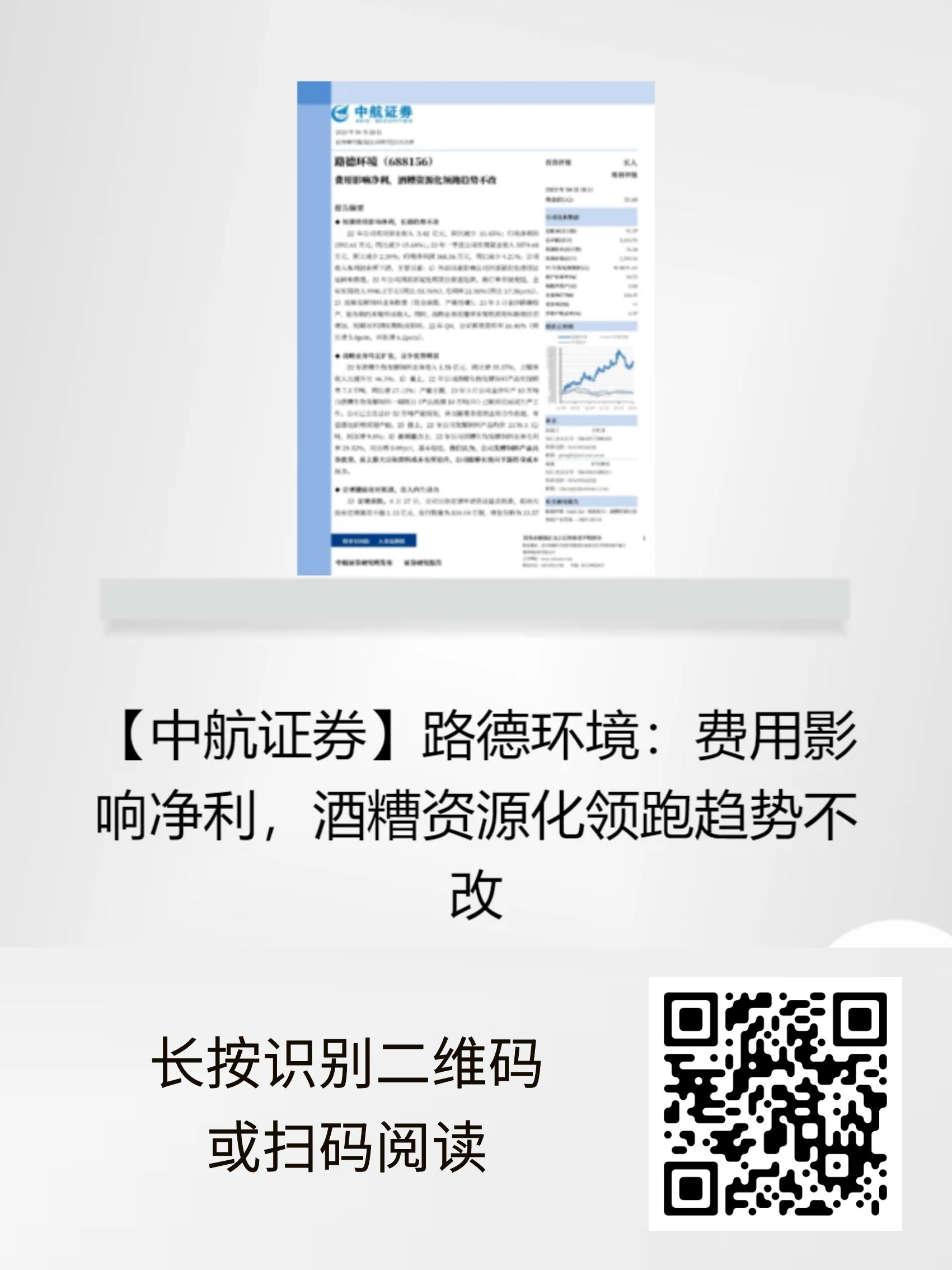 【點評報告】中航證券點評路德環(huán)境:費用影響凈利,酒糟資源化領(lǐng)跑趨勢不改