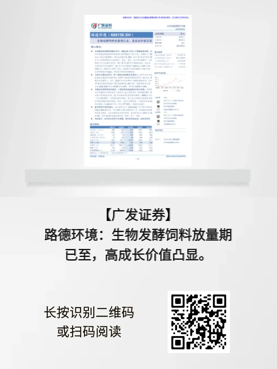 2023年5月23日,廣發(fā)證券發(fā)布了以《路德環(huán)境:生物發(fā)酵飼料放量期已至,高成長價值凸顯?!窞橹黝}的深度證券研究報告,對公司業(yè)務(wù)發(fā)展進(jìn)行全方位點(diǎn)評,并維持了“買入”評級。