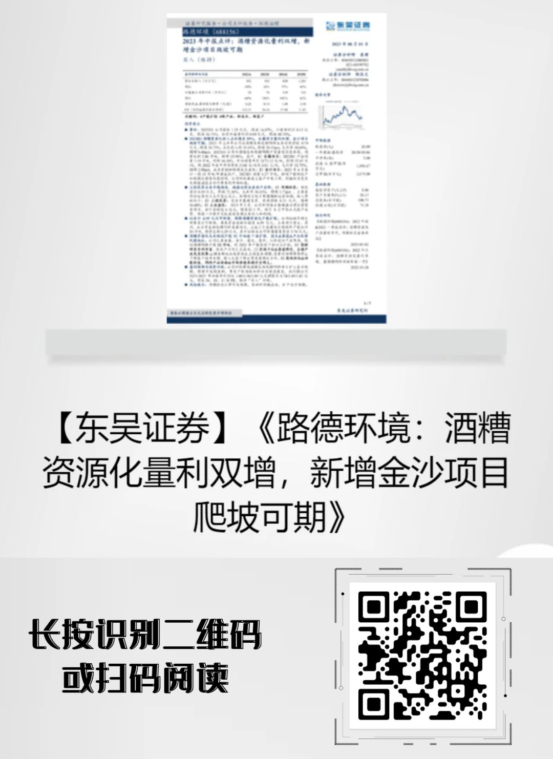 【點(diǎn)評報告】東吳證券點(diǎn)評路德環(huán)境:酒糟資源化量利雙增,新增金沙項(xiàng)目爬坡可期