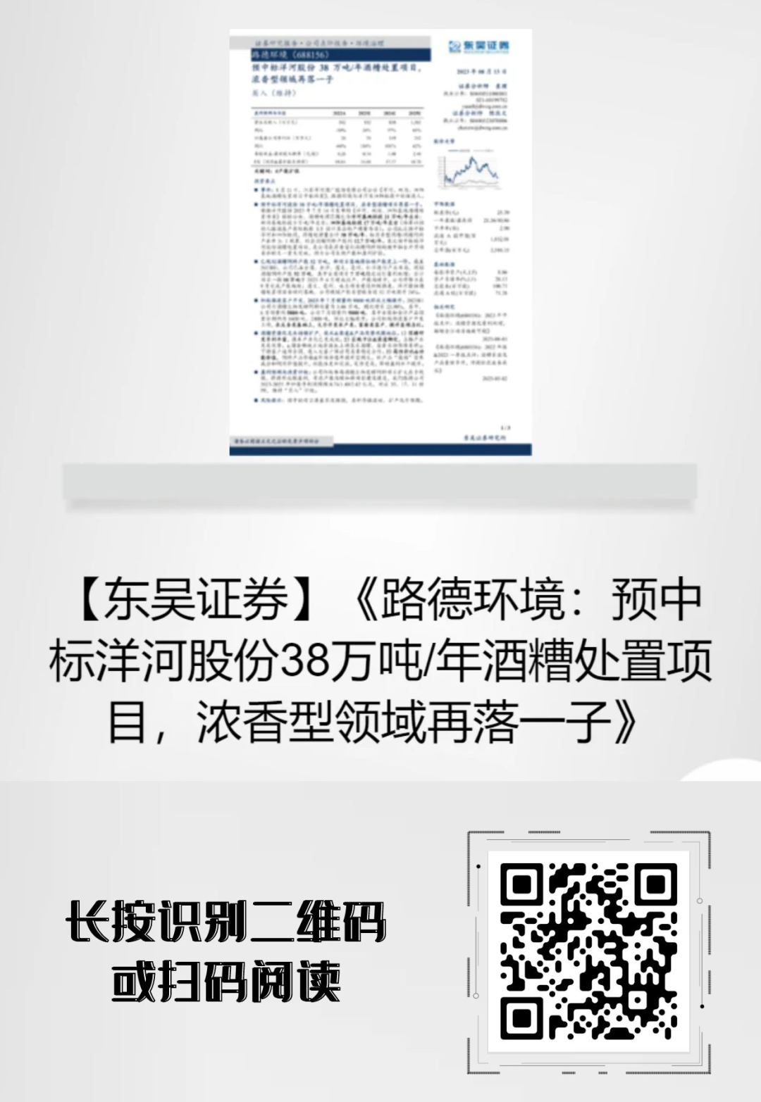 2023年8月11日,江蘇洋河酒廠股份有限公司公示《洋河、雙溝、泗陽(yáng)基地酒糟處置項(xiàng)目中標(biāo)結(jié)果》,路德環(huán)境為洋河及泗陽(yáng)標(biāo)段中標(biāo)候選人。東吳證券發(fā)布點(diǎn)評(píng)報(bào)告,對(duì)此事件進(jìn)行深入分析,并對(duì)公司業(yè)務(wù)現(xiàn)狀和未來(lái)發(fā)展前景給予肯定。